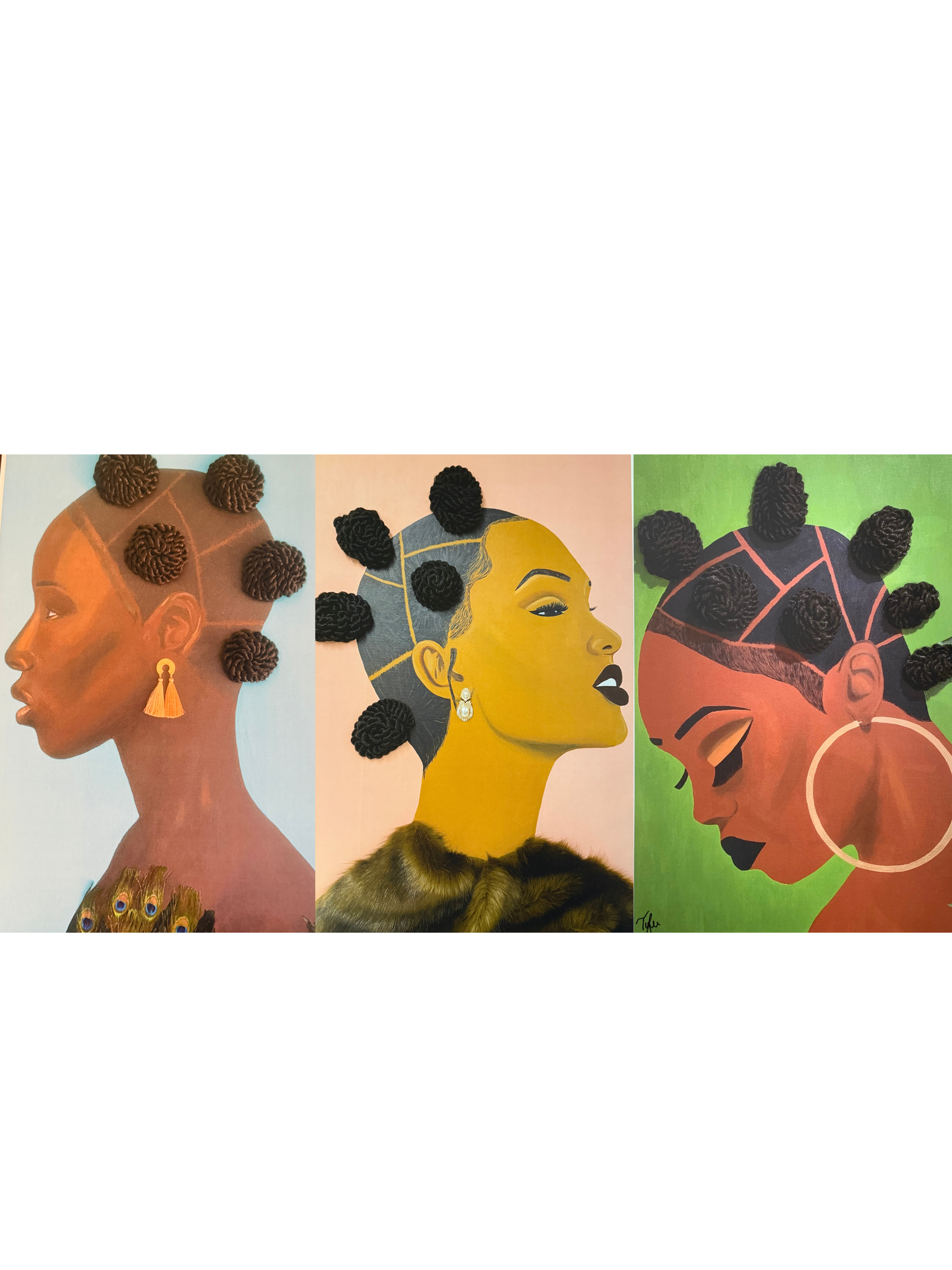 3 12X18 2D prints of the Bantu knot collection. This print does not have real hair added.